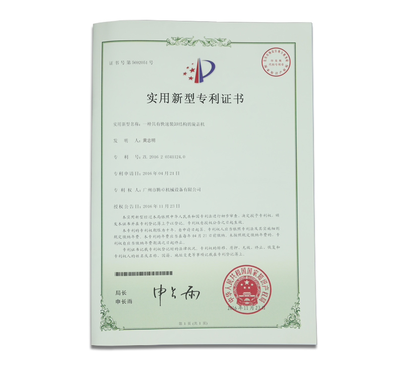 騰卓機(jī)械專利生產(chǎn)證書,專業(yè)制造包裝設(shè)備的生產(chǎn)廠家,全自動(dòng)及半自動(dòng)的洗瓶機(jī),烘干機(jī),灌裝機(jī),旋蓋機(jī),貼標(biāo)機(jī),套標(biāo)機(jī),打碼機(jī)等非標(biāo)定制自動(dòng)化包裝生產(chǎn)線